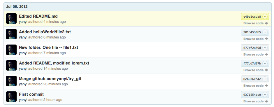 Today, I came across Code School’s Try Git that taught people how to do some basic stuff for 15 minutes. I was able to follow along, and it was interesting. I also saw that Geeklist added a new feature for you to feature your commits on Facebook, and found it cool.